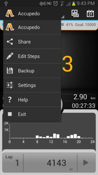 Accupedo Pedometer - Step Counter é um pedômetro para pessoas que desejam ser mais saudáveis. Ele permite que você acompanhe seus passos diários e calorias queimadas. Você também pode salvar o histórico de sua contagem de passos e consumo de calorias para os dias e semanas para ajudá-lo a acompanhar sua saúde e condicionamento físico. Também é equipado com um widget para facilitar o uso.